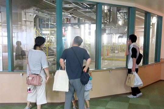普段は見られない工場内の施設を見ることができました。 見学者のかたには、ペットボトルをリサイクルして作ったマグカップをお渡ししました。